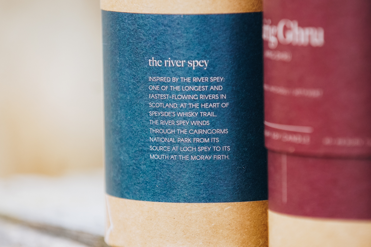Inspired by the River Spey: one of the longest and fastest-flowing rivers in Scotland. At the heart of Speyside’s whisky trail, the River Spey winds through the Cairngorms National Park from its source at Loch Spey to its mouth into the Moray Firth.